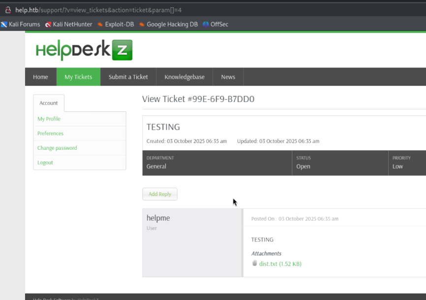Well we have some credentials to the HelpDeskZ dashboard.