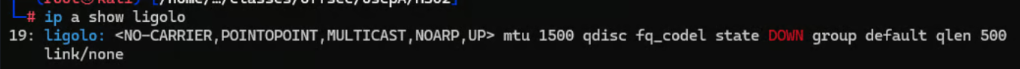 ip tuntap add user root mode tun ligoloip link set ligolo upip a show ligoloIf you setup the interface correctly you should see an output similar to the screenshot below. Note that currently it states its "DOWN" which is fine for right now.